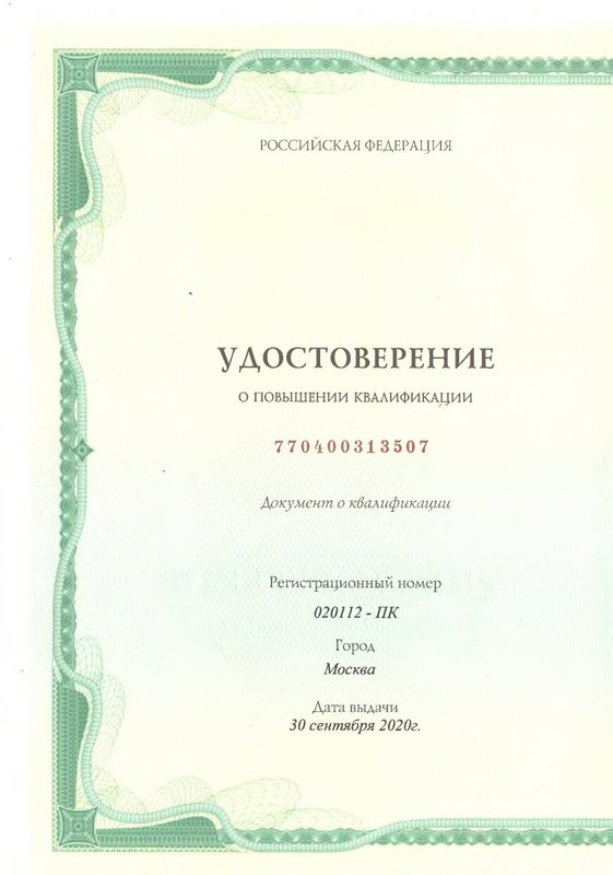 В числе повышений квалификаций/курсов:
