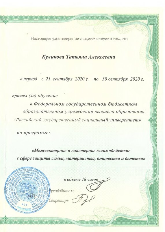 2020 Межсекторное и кластерное взаимодействие в сфере защиты семьи, материнства и детства